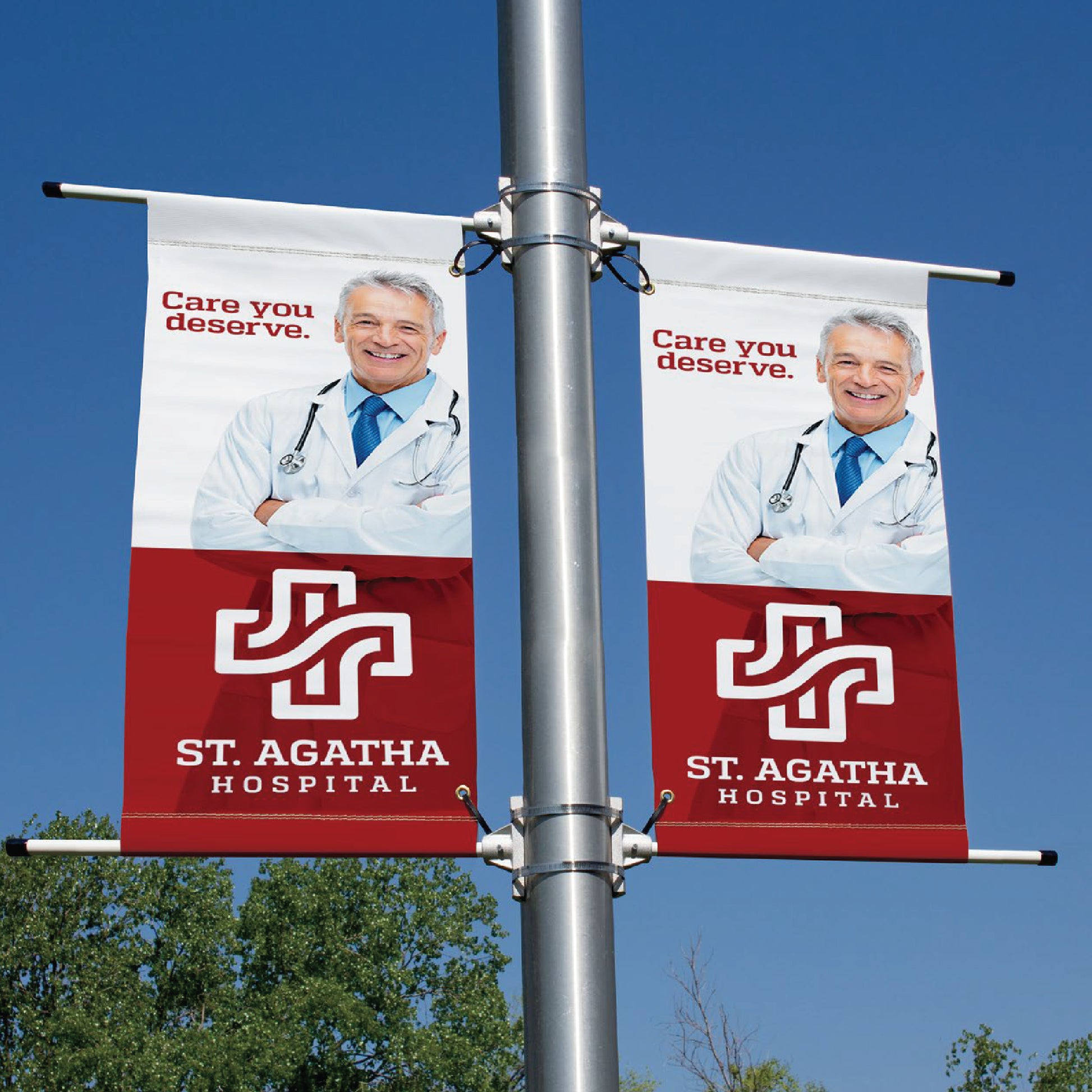 A great way for cities, towns, apartment complexes and many others to promote themselves. Avenue banners are attached to light poles with two aluminum brackets. The banner has a standard fold-over pole pocket on the top and bottom and 2 brass grommets.